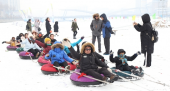 2月20日,延吉市 “第三届中国残疾人冰雪运动季”启动。 来自各街道、协会的50余名残疾人代表、基层残疾人工作者免费体验了滑雪圈、疯狂雪圈