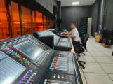 7月14日,记者在延边工人文化宫看到,工作人员正在加紧调试灯光、音响、舞台机械等设备。“延边工人文化宫项目已于5月30日交付使用。目前正进行灯光、音响、屏幕、舞