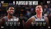 北京时间1月8日消息,NBA官方宣布,76人队的乔尔-恩比德和掘金队的尼古拉-约基奇分别当选上周东西部最佳球员。 恩比德职业生涯第4次获得周最佳,成为