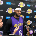美国洛杉矶当地时间11月6日上午(北京时间7日凌晨),湖人队在自己的训练基地进行训练,备战明天晚上主场迎战森林狼的比赛。 值得一提的是,詹姆斯重新戴上
