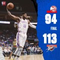 北京时间10月8日消息,NBA季前赛继续进行。坐镇主场的雷霆队经过四节较量以113-94轻取老鹰队。 四节的具体比分为29-26、22-32、16-35和27