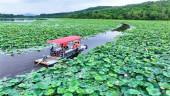 在莲花湖公园的湖水中,荷叶如翠盘,轻轻铺展于水面;有的花朵已经盛开,湖面上红、白、粉三色的花朵争艳;而有的花朵则宛如羞涩的少女紧紧包裹着内心的艳丽,静待绚烂绽放