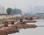 延吉布尔哈通河延东桥至溪洞铁路桥防洪薄弱环节治理工程于日前开工建设。工程将对延东桥至溪洞铁路桥段两岸堤防加固和绿化,建设生态隔离带10390米。图为施工现场。