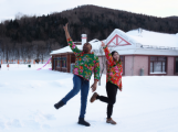 今年以来,敦化市冰雪旅游持续升温,吸引了众多中外游客在冰天雪地中体验快乐,让“冷资源”转化为“热经济”。图为外国友人和中国游客在老白山雪村翩翩起舞。延边日报全媒