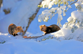 近期,在延边仙峰国家森林公园海拔800—1600米针阔叶混交林中活跃着几十只紫貂,它们时而在雪中埋头刨挖,时而在树上攀爬跳跃,非常可爱。图为紫貂。延边日报全媒体