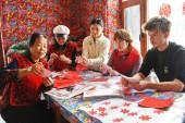 去年入冬以来,热“雪”激情燃爆延边,吸引了国内外大批游客到延边体验冰雪文化,感受中华优秀传统文化的魅力。图为外国游客近日在敦化市大石头镇向民间艺人学习剪纸,感受