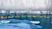 长白山风光无限,不仅有恢弘大气的天池和峡谷,还有绝美秘境——雾凇。12月的安图县水色雾凇岛,树林在雾凇的映衬下变得神秘妖娆,令人陶醉。图为体验漂流的游客正沉浸在
