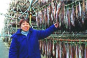 近年来,珲春市依托区位优势,大力发展包括海产品加工、陆海联运、国际物流等转型产业在内的海洋经济,探索向海图强的高质量发展新路。图为珲春市海味多食品有限公司员工晾