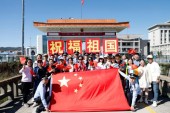 9月28日,图们出入境边防检查站移民管理警察和游客群众一起在图们口岸国门前与国旗合影,祝福伟大祖国繁荣昌盛,喜迎国庆节到来。 张彪 摄