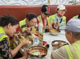 当日中午,30名环卫工人边吃着冷面边唠着家常。“这碗冷面酸甜清爽,吃完了凉快不少,感受到了社会的关爱,以后我们更有干劲了!”环卫工人何彪说。为了不打扰环卫工人的