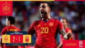 比赛开始,第3分钟,西班牙取得进球!博努奇后场出球被断下,皮诺拿下后面对门将冷静射门得手,西班牙1-0迎来梦幻开局。第17分钟,纳瓦斯右路得球内切后在禁区线附近