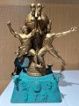 除此之外,主办方还为阿根廷国家队和梅西准备了两个特制奖杯。其中一个奖杯为“世界球王”,整体造型仿若一尊青铜器,主体是肯佩斯、马拉多纳和梅西举起世界杯金杯,底座是