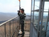 2月22日,记者在瞭望塔下见到杨成。他身材消瘦,微微有些驼背,脸上的皱纹是岁月和风霜留下的痕迹。他虽不善言辞,但目光炯炯且坚毅。今年52岁的他,攀爬16米高的瞭