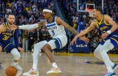 两次漏判,其实都发生在同一个回合。距离比赛结束还有9.9秒时,勇士96-98落后两分,迪文琴佐在边线发球,而追梦在为队友掩护时,站在了界外。这是一次“界外非法掩