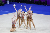 王子露在比赛中。组委会供图3日进行的成年个人资格赛中,代表陕西电子队出战的王子露在圈操比赛中获得27.70的高分,在球操比赛中带来一套陕北风格节目收获26.90