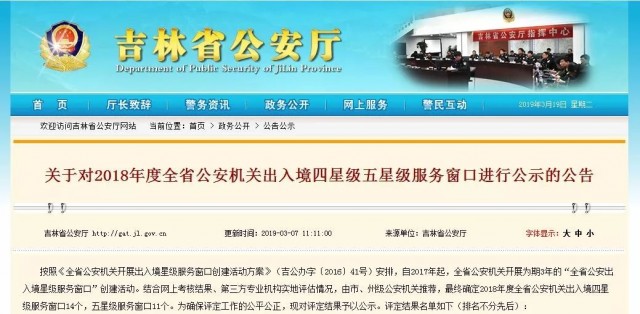 按照《全省公安机关开展出入境星级服务窗口创建活动方案》(吉公办字〔2016〕41号)安排,自2017年起,全省公安机关开展为期3年的“全省公安出入境星级服务窗口”创建活动。