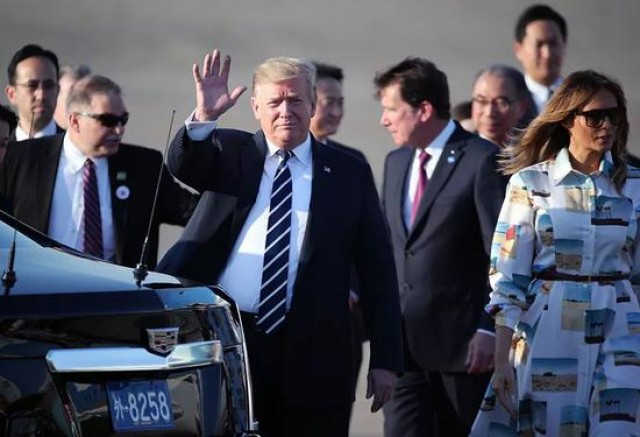 27日上午,特朗普前往皇居会见日本德仁天皇和皇后,成为德仁天皇5月1日即位以来会见的首位外国首脑。随后,他与安倍举行第11次日美首脑会谈。28日上午,特朗普在安倍陪同下视察日本海上自卫队和驻日美军在横须贺的基地,登上日本海上自卫队航母级直升机驱逐舰“加贺”号并发表讲话,重申美日同盟关系的重要性。