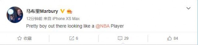 “Pretty boy out there looking like a @NBA Player(方硕看起来就像是一名NBA球员一样)”马布里在社交媒体上写道。