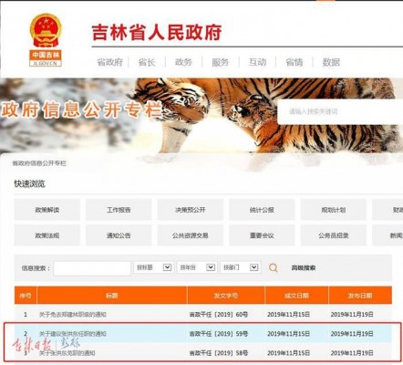 关于张洪东免职的通知吉政干任〔2019〕58号