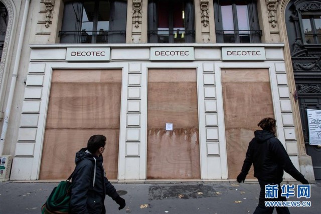 12月5日,警察在法国巴黎街头警戒巡逻。 新华社发(奥雷利安·莫里萨尔摄)