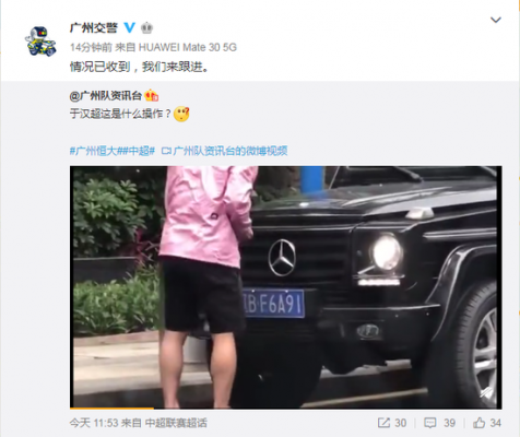受到新冠肺炎疫情的影响,2020赛季中超联赛迟迟未能开始,各中超球队都在按照自己的计划进行备战,时刻做着准备,前段时间已经经过了海外拉练的广州恒大近来在广州备战,新赛季开赛时间遥遥无期需要队员们做好充分的心理和身体上的准备。然而,就是在这样一个特殊时期,于汉超却做出了一个令人费解的举动,在马路边公然涂改车辆号牌,这一举动也被拍得清清楚楚。根据当下广州对机动车限行的规定,对非粤A车牌实施“开四停四”的限行措施,即开四天停四天,于汉超的辽B车牌正是在这个限行范围内,如果违反了限行规定,则将面临扣分罚款的处罚。