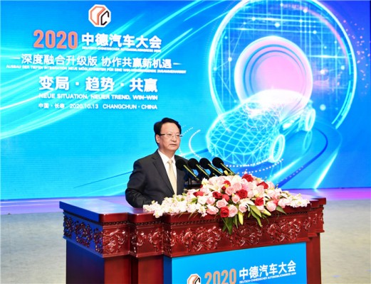 10月13日,2020中德汽车大会在长春举行。省委副书记、省长景俊海出席主论坛并讲话,见证中国一汽与奥迪(中国)签署新能源汽车合作谅解备忘录。