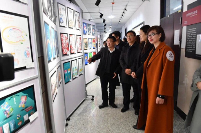仪式结束后,与会领导、嘉宾和学生共同参观首届师生艺术作品联展。