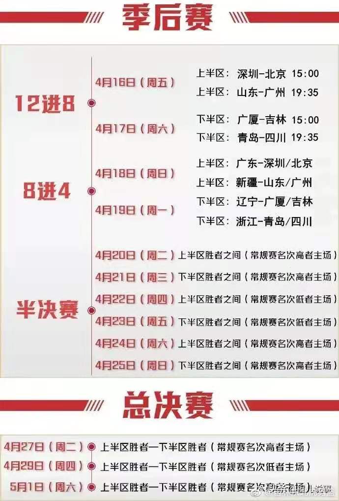4月15日,本赛季CBA常规赛全部结束,季后赛将于明天正式开始,目前,季后赛首轮的对阵和赛程也已经全部出炉。