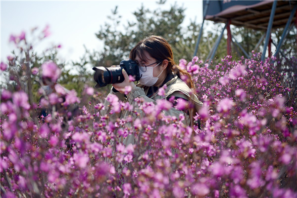 4月15日上午,龙井犇福牧场正式开园。金达莱花开得特别热闹,像一片片粉红的云霞。游客穿梭其间,赏花、拍照,非常开心。