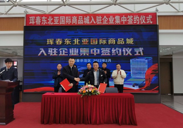 2月15日,珲春东北亚国际商品城举行入驻企业集中签约仪式,进一步加大珲春招商引资力度,吸引更多优质企业入驻,合力打造沿边开放型城市旅游购物新地标,为珲春经济社会发展增添动力与活力。