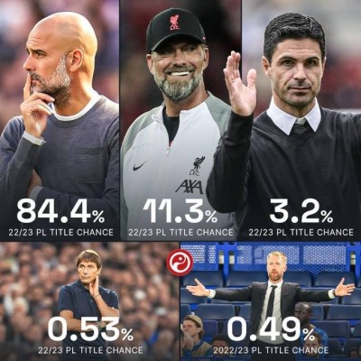 您的当前位置:智慧体育首页 > 看资讯 > 新闻资讯 > 数据预测英超夺冠概率:曼城高达84.4% 曼联0.03%