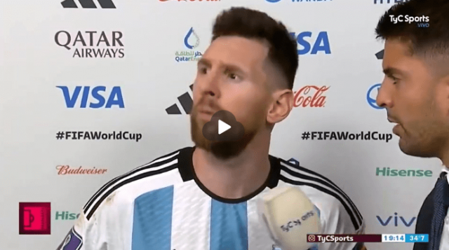 队记称:“第一次,梅西忽视了我的问题,他太愤怒了,以致于他当时根本没看我,也没听我的问题。我问他关于他给莫里纳不可思议的传球,他回答了关于范加尔的话题。我问他劳塔罗的进球,他说了裁判的事情。哈哈我完全不能采访他。在我们直播时,他还是很愤怒。这就是我为什么告诉他‘里奥,要冷静下来’。那里还有很多国际足联的人,你不知道会发生什么。关于这段采访,我会永远记得。”