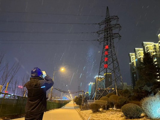 正月初六上午8时许,张鹏踩着积雪拿着望远镜观测远处的铁塔设备,对重点线路的输电线路通道和塔上的防震锤、绝缘子进行了重点检查。“为防止恶劣天气影响设备健康状态,我们利用无人机和红外测温设备,对重要负荷线路、‘三跨’区段线路及牵引站线路开展精细化巡检,全力排查和消除隐患,确保设备在春节期间稳定运行。”张鹏告诉记者,巡检队伍由10人组成,分为5组,一组巡视珲春市、图们市、汪清县方向的输电线路,二组巡视敦化市、安图县、龙井市方向的输电电路,三组巡视延吉市、和龙市方向的输电线路,剩余两组主要负责对易覆冰线路、“三跨”线路等进行重点巡视。