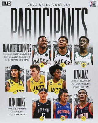 今年技巧挑战赛共分为三队,分别是字母哥兄弟队、爵士代表队以及新秀代表队,具体名单如下: