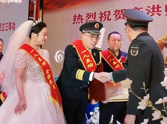 能在自己的婚礼上收到立功喜报和三等功臣之家牌匾,让辛洪帅备受鼓舞。他表示,今后将坚持用习近平新时代中国特色社会主义思想武装头脑,坚持标准,坚持原则,严于律己,积极发挥党员模范带头作用,自觉接受群众监督,恪守廉洁纪律,在岗位上再接再厉,为国再立新功。
