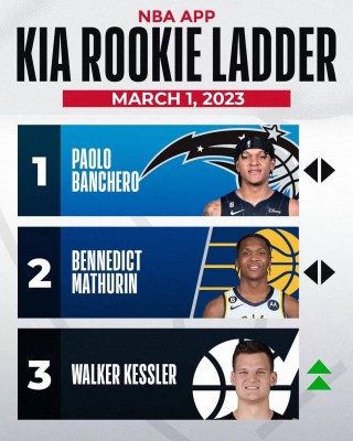 北京时间3月2日消息,NBA官方公布了最新一期新秀榜。本期榜单,状元班切罗蝉联首位,马瑟林排名第2,凯斯勒升至NO.3。