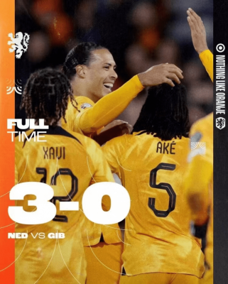 荷兰主场面对欧洲“鱼腩”直布罗陀,可以说掀起了“狂攻”模式,全场比赛狂射51脚,但仅打入3球。比赛第22分钟,邓弗里斯右路传至禁区,德佩利用对手门将失误头球打破场上僵局。比赛第50分钟,邓弗里斯禁区里垫传助攻阿克头球中柱后入网。比赛第51分钟沃克踩踏维弗尔染红离场,荷兰11打10。比赛第83分钟,布林德助攻,阿克远射打在防守球员身上折射入网。就这样荷兰3-0轻取10人直布罗陀,但也暴露了严重的锋无力。