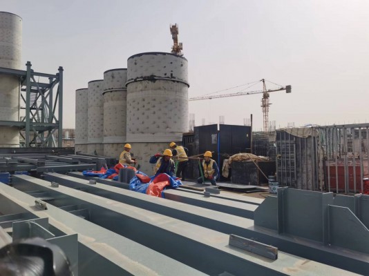 4月12日,记者在位于延吉国际空港经济开发区的数字化(全自动化)西部热源建设项目(一期)工程建设现场看到,方正的混凝土建筑与圆形的钢结构烟囱主体分区排列,其间空地上,工人们正四人一组合力将一块块厚重的钢板摆放至指定区域,为后续组合安装做准备,一个崭新的“热源”已初具模样。
