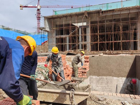 汪清县省域优质医疗资源扩容下沉项目,总投资5.2亿元,计划新建一座总建筑面积8.44万平方米,占地4.24万平方米,可设置床位560张,集急诊急救、重点专科、门诊住院、检验中心于一体的现代化综合医院。3月28日正式复工建设后,正在进行主楼东侧三层支膜、西侧二层钢筋绑扎与混凝土浇筑施工。