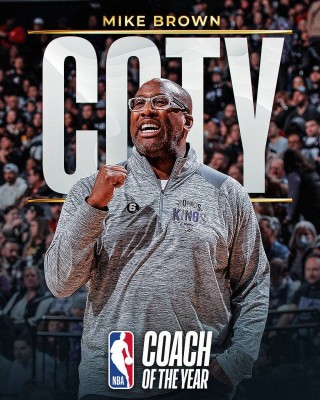 本赛季,迈克-布朗率领国王取得48胜34负的战绩,以西部第三的身份晋级季后赛,打破了连续16个赛季无缘季后赛的魔咒,还夺得太平洋赛区的冠军。目前,国王在季后赛首轮2-0领先勇士,布朗功不可没。