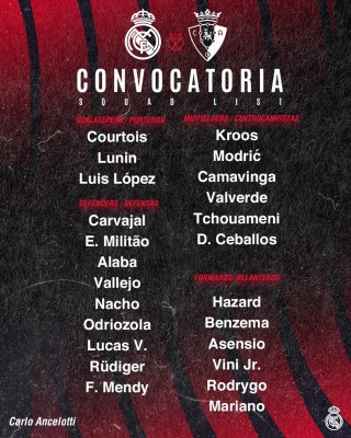 北京时间5月5日,皇马官方公布了国王杯决赛对战奥萨苏纳的大名单,本泽马与维尼修斯领衔,此前受伤的莫德里奇在列。