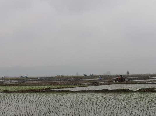 5月17日,龙井市东盛涌镇东盛涌村一望无际的稻田在小雨的滋润下,充满勃勃生机,许多农民冒着细雨整地泡田,个别农户已经开始插秧,海兰江畔一派忙碌景象。