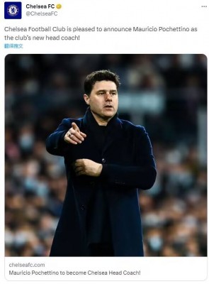 北京时间5月29日,英超俱乐部切尔西官方宣布,阿根廷人波切蒂诺正式出出任球队主帅。据悉,波切蒂诺与切尔西的合同将在今年7月1日正式生效,合同期限两年,俱乐部可选择延长一年。波切蒂诺曾执教于西班牙人、南安普顿、热刺、巴黎圣日耳曼等俱乐部。