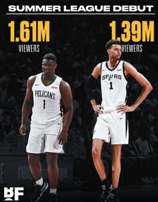 北京时间7月11日,据美媒Basketball Forever报道,今年状元秀文班亚马的夏联首秀的被观看次数达139万次,在历史上仅次于2019年锡安的161万次。