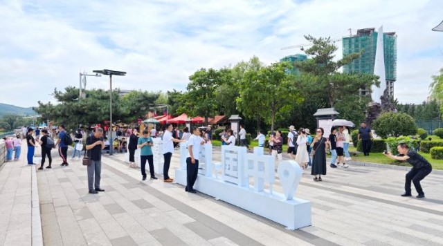 随着延边旅游的爆火,昔日静谧的边陲小城——图们市正走入全国人民的视野。今年7月份以来,图们市游客不断,每天都有大批游客来到图们江边领略边境线上的祖国河山。图为游客在图们江边留影。
