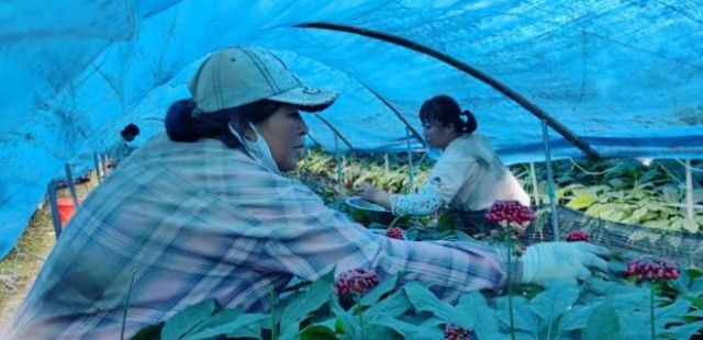 安图县松江镇板石村青年村民陈卫好返乡创业种植人参发家致富。七年多来,他通过科学管理,规范经营,产业发展越来越好,今年参籽又喜获丰收。图为参农正在采摘参籽。 延边日报全媒体记者 艾立夫 摄
