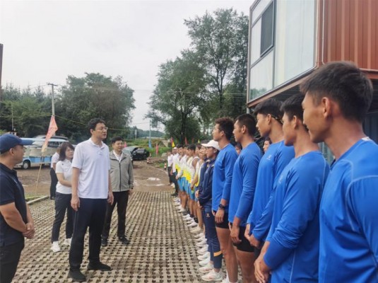 调研组一行先后来的到靖宇县、抚松县、浑江区进行调研。在花园口镇,牟大鹏局长慰问了我省备战训练的省皮划艇队、赛艇队运动员,考察了吉林省水上运动小镇项目拟选址地。对水上基地建设、运动队住所、船艇器材和水上训练情况进行了详细踏察。