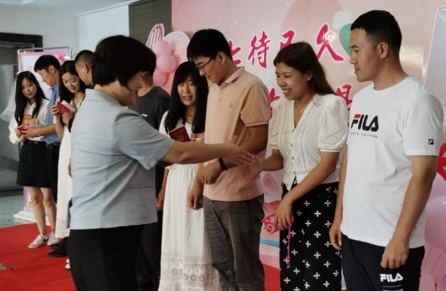 8月22日,延吉市民政局迎来了注册结婚高峰。很多情侣选择在七夕节登记结婚,寓意长长久久、和谐美满,共同迎接未来的幸福生活。图为工作人员在为情侣们发放登记证书。