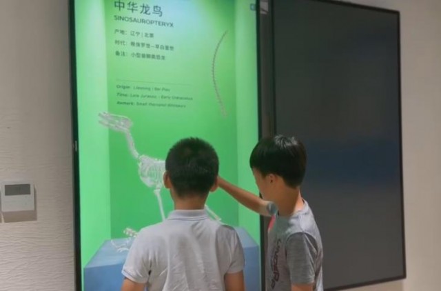 她表示,此次数字化升级改造了8处,中生代数字生态沉浸互动系统运用数字技术,将原本的壁画进行动态还原,当游客短时间站在展项前,系统识别后会随机出现不同的交互场景,游客便可身临其境般感受到中生代的恐龙形态以及生活环境,为整个展馆增添了更多的互动性和趣味性;中生代数字生态裸眼3D打卡系统利用L形屏幕将原本的墙体和棚顶进行了数字化的融合,呈现在游客面前的不再是单一的静态图像,而是一个沉浸的动态生态系统,让游客仿佛置身于远古的中生代时代,在虚拟与现实交织的空间中探索远古世界的奥秘;数字海洞网红打卡沉浸系统、海洋生物柱形交互系统、动态交互影像定位系统则为游客还原了海底环境。白浪拍打的沙滩、蛟龙畅游的海底世界、密集的鱼群……让游客仿若穿梭于中生代的海底世界;恐龙科普数字孪生智慧查询系统还原了远古时代的恐龙生态分布地图,系统中融合了丰富的数字资料,包括各类恐龙的发源地及其独特的生活习惯等,为所有热爱恐龙的朋友们提供了一个全面而精彩的科普平台。