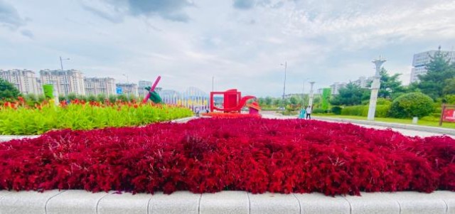 今年以来,延吉市加快“绿美延吉”行动进程,一抹抹绿色陆续填满了市内各游园、广场、河坝等规划场地。如今,延吉市内到处是满眼翠绿,鲜花盛开,生机勃勃的景象,城市风采再次升级,实现了由“绿”向“美”的蜕变。图为州政府门前的广场花团锦簇美丽如画。